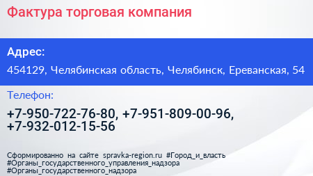 Фактура, торговая компания по адресу 454129, Челябинская область, Челябинск, Ереванская, 54 в дальнейшем Организация, размещена в следующих категориях: