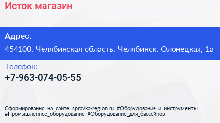 Исток, магазин по адресу 454100, Челябинская область, Челябинск, Олонецкая, 1а в дальнейшем Организация, размещена в следующих категориях: