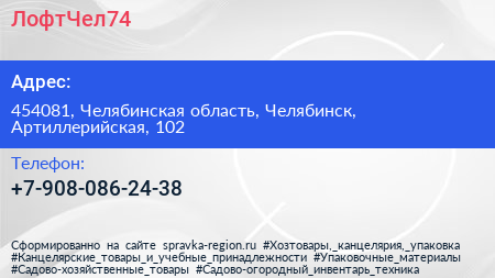 ЛофтЧел74 по адресу 454081, Челябинская область, Челябинск, Артиллерийская, 102 в дальнейшем Организация, размещена в следующих категориях: