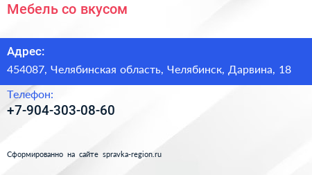 Мебель со вкусом по адресу 454087, Челябинская область, Челябинск, Дарвина, 18 в дальнейшем Организация, размещена в следующих категориях: