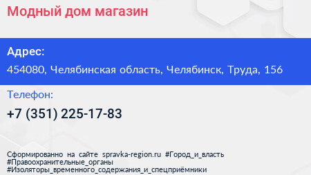 Модный дом, магазин по адресу 454080, Челябинская область, Челябинск, Труда, 156 в дальнейшем Организация, размещена в следующих категориях: