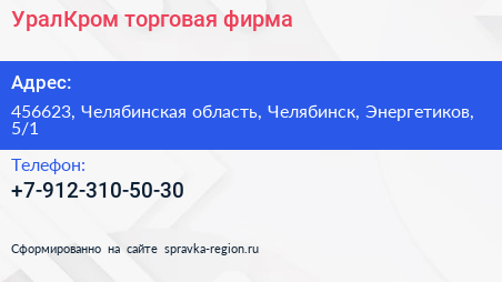 УралКром, торговая фирма по адресу 456623, Челябинская область, Челябинск, Энергетиков, 5/1 в дальнейшем Организация, размещена в следующих категориях:
