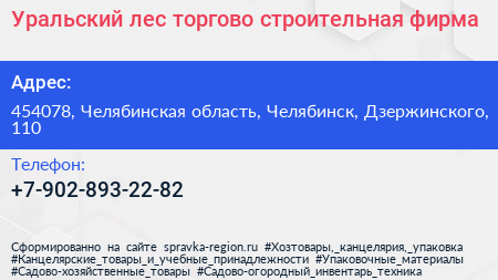 Уральский лес, торгово-строительная фирма по адресу 454078, Челябинская область, Челябинск, Дзержинского, 110 в дальнейшем Организация, размещена в следующих категориях: