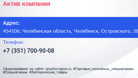 Актив, компания по адресу 454106, Челябинская область, Челябинск, Островского, 38 в дальнейшем Организация, размещена в следующих категориях: