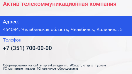 Актив, телекоммуникационная компания по адресу 454084, Челябинская область, Челябинск, Калинина, 5 в дальнейшем Организация, размещена в следующих категориях:
