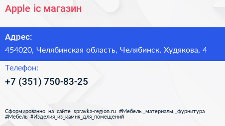 Apple-ic, магазин по адресу 454020, Челябинская область, Челябинск, Худякова, 4 в дальнейшем Организация, размещена в следующих категориях: