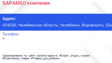 БАРАМЕО, компания по адресу 454020, Челябинская область, Челябинск, Воровского, 52а в дальнейшем Организация, размещена в следующих категориях: