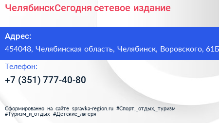 ЧелябинскСегодня, сетевое издание по адресу 454048, Челябинская область, Челябинск, Воровского, 61Б в дальнейшем Организация, размещена в следующих категориях: