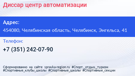 Диссар, центр автоматизации по адресу 454080, Челябинская область, Челябинск, Энгельса, 41 в дальнейшем Организация, размещена в следующих категориях: