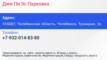Джи Пи Эс Парковка по адресу 454087, Челябинская область, Челябинск, Троицкая, 1в в дальнейшем Организация, размещена в следующих категориях: