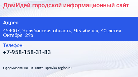 ДомИдей, городской информационный сайт по адресу 454007, Челябинская область, Челябинск, 40-летия Октября, 29а в дальнейшем Организация, размещена в следующих категориях: