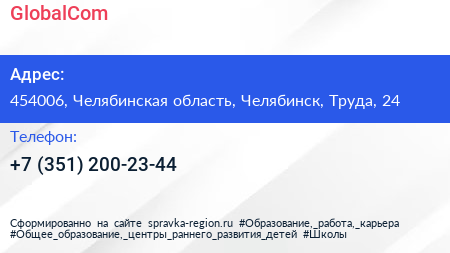 GlobalCom по адресу 454006, Челябинская область, Челябинск, Труда, 24 в дальнейшем Организация, размещена в следующих категориях: