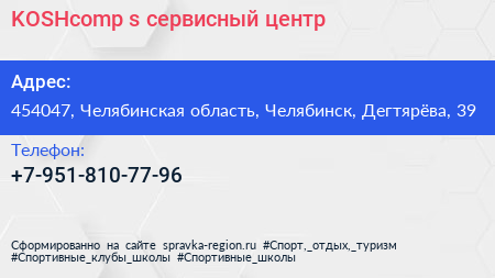 KOSHcomp`s, сервисный центр по адресу 454047, Челябинская область, Челябинск, Дегтярёва, 39 в дальнейшем Организация, размещена в следующих категориях: