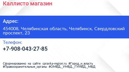 Каллисто, магазин по адресу 454008, Челябинская область, Челябинск, Свердловский проспект, 23 в дальнейшем Организация, размещена в следующих категориях: