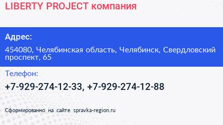 LIBERTY PROJECT, компания по адресу 454080, Челябинская область, Челябинск, Свердловский проспект, 65 в дальнейшем Организация, размещена в следующих категориях: