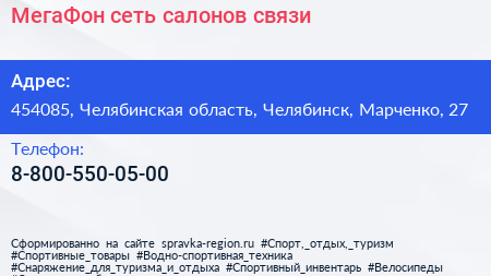 МегаФон, сеть салонов связи по адресу 454085, Челябинская область, Челябинск, Марченко, 27 в дальнейшем Организация, размещена в следующих категориях: