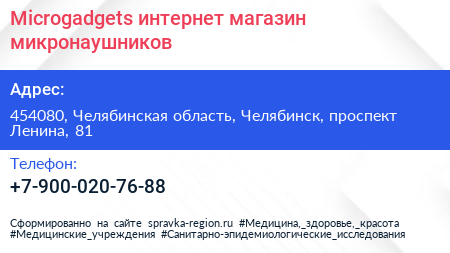 Microgadgets, интернет-магазин микронаушников по адресу 454080, Челябинская область, Челябинск, проспект Ленина, 81 в дальнейшем Организация, размещена в следующих категориях: