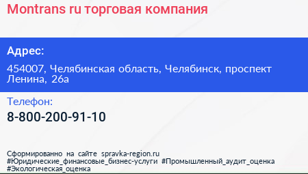 Montrans.ru, торговая компания по адресу 454007, Челябинская область, Челябинск, проспект Ленина, 26а в дальнейшем Организация, размещена в следующих категориях: