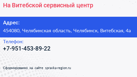 На Витебской, сервисный центр по адресу 454080, Челябинская область, Челябинск, Витебская, 4а в дальнейшем Организация, размещена в следующих категориях: