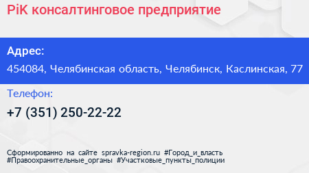 PiK, консалтинговое предприятие по адресу 454084, Челябинская область, Челябинск, Каслинская, 77 в дальнейшем Организация, размещена в следующих категориях:
