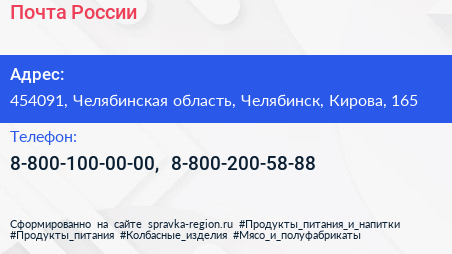 Почта России по адресу 454091, Челябинская область, Челябинск, Кирова, 165 в дальнейшем Организация, размещена в следующих категориях: