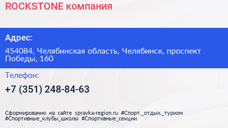 ROCKSTONE, компания по адресу 454084, Челябинская область, Челябинск, проспект Победы, 160 в дальнейшем Организация, размещена в следующих категориях: