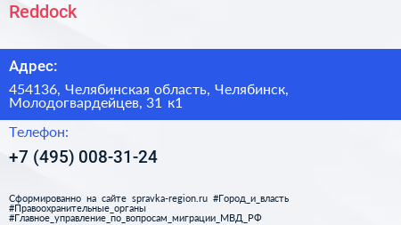 Reddock по адресу 454136, Челябинская область, Челябинск, Молодогвардейцев, 31 к1 в дальнейшем Организация, размещена в следующих категориях: