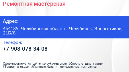 Ремонтная мастерская по адресу 454135, Челябинская область, Челябинск, Энергетиков, 21Б/8 в дальнейшем Организация, размещена в следующих категориях: