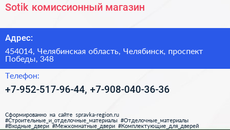 Sotik, комиссионный магазин по адресу 454014, Челябинская область, Челябинск, проспект Победы, 348 в дальнейшем Организация, размещена в следующих категориях: