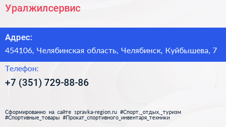 Уралжилсервис по адресу 454106, Челябинская область, Челябинск, Куйбышева, 7 в дальнейшем Организация, размещена в следующих категориях: