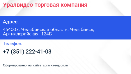 Уралвидео, торговая компания по адресу 454007, Челябинская область, Челябинск, Артиллерийская, 124Б в дальнейшем Организация, размещена в следующих категориях: