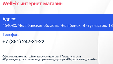 WellFix, интернет-магазин по адресу 454080, Челябинская область, Челябинск, Энтузиастов, 18 в дальнейшем Организация, размещена в следующих категориях: