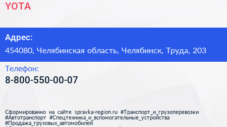 YOTA по адресу 454080, Челябинская область, Челябинск, Труда, 203 в дальнейшем Организация, размещена в следующих категориях: