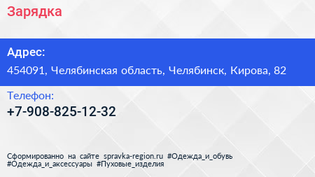 Зарядка по адресу 454091, Челябинская область, Челябинск, Кирова, 82 в дальнейшем Организация, размещена в следующих категориях: