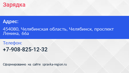 Зарядка по адресу 454080, Челябинская область, Челябинск, проспект Ленина, 66а в дальнейшем Организация, размещена в следующих категориях: