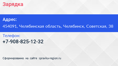 Зарядка по адресу 454091, Челябинская область, Челябинск, Советская, 38 в дальнейшем Организация, размещена в следующих категориях: