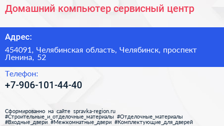 Домашний компьютер, сервисный центр по адресу 454091, Челябинская область, Челябинск, проспект Ленина, 52 в дальнейшем Организация, размещена в следующих категориях: