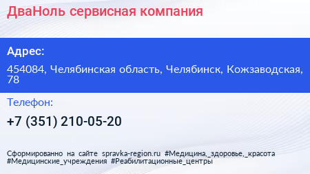 ДваНоль, сервисная компания по адресу 454084, Челябинская область, Челябинск, Кожзаводская, 78 в дальнейшем Организация, размещена в следующих категориях: