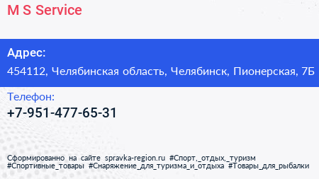 M.S.Service по адресу 454112, Челябинская область, Челябинск, Пионерская, 7Б в дальнейшем Организация, размещена в следующих категориях: