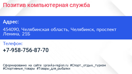 Позитив, компьютерная служба по адресу 454090, Челябинская область, Челябинск, проспект Ленина, 21Б в дальнейшем Организация, размещена в следующих категориях:
