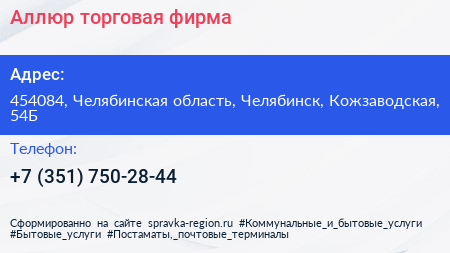 Аллюр, торговая фирма по адресу 454084, Челябинская область, Челябинск, Кожзаводская, 54Б в дальнейшем Организация, размещена в следующих категориях: