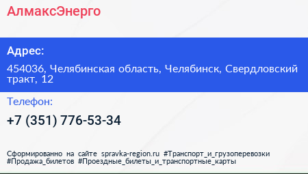 АлмаксЭнерго по адресу 454036, Челябинская область, Челябинск, Свердловский тракт, 12 в дальнейшем Организация, размещена в следующих категориях: