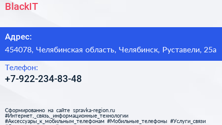 BlackIT по адресу 454078, Челябинская область, Челябинск, Руставели, 25а в дальнейшем Организация, размещена в следующих категориях: