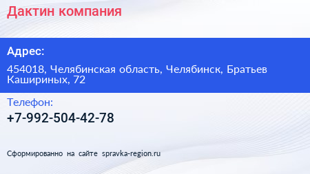 Дактин, компания по адресу 454018, Челябинская область, Челябинск, Братьев Кашириных, 72 в дальнейшем Организация, размещена в следующих категориях: