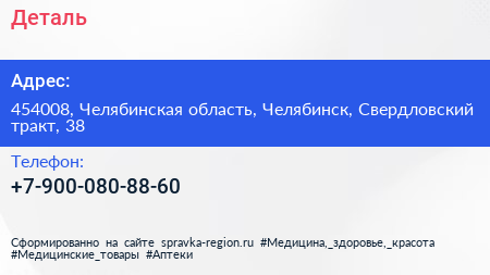 Деталь по адресу 454008, Челябинская область, Челябинск, Свердловский тракт, 38 в дальнейшем Организация, размещена в следующих категориях: