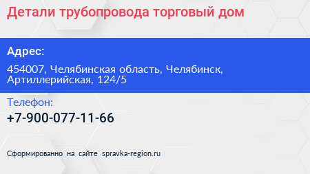 Детали трубопровода, торговый дом по адресу 454007, Челябинская область, Челябинск, Артиллерийская, 124/5 в дальнейшем Организация, размещена в следующих категориях: