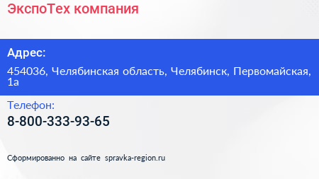 ЭкспоТех, компания по адресу 454036, Челябинская область, Челябинск, Первомайская, 1а в дальнейшем Организация, размещена в следующих категориях: