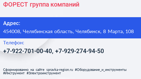 ФОРЕСТ, группа компаний по адресу 454008, Челябинская область, Челябинск, 8 Марта, 108 в дальнейшем Организация, размещена в следующих категориях: