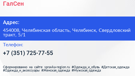 ГалСен по адресу 454008, Челябинская область, Челябинск, Свердловский тракт, 5/1 в дальнейшем Организация, размещена в следующих категориях: