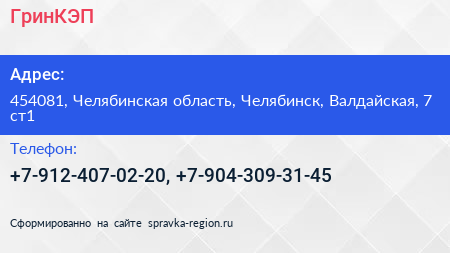 ГринКЭП по адресу 454081, Челябинская область, Челябинск, Валдайская, 7 ст1 в дальнейшем Организация, размещена в следующих категориях: